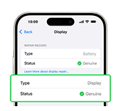 Displej obsahuje všechny komponenty potřebné pro profesionální výměnu – včetně předního fotoaparátu, senzorů přiblížení a montážních šroubů. Po dokončení opravy software Apple Repair Assistant automaticky ověří a potvrdí pravost náhradního dílu. V nastavení zařízení se poté zobrazí stav „ Originální “, který zaručuje, že byl použit oficiální díl Apple .